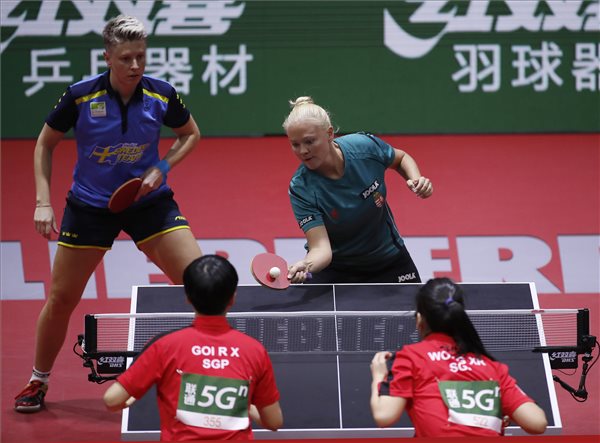 Póta Georgina, Matilda Ekholm (magyar, svéd, 10.) – Koi Zsuj-hszüan, Vong Hszin-zsu (szingapúri) 4-1 (-11, 8, 7, 2, 4)