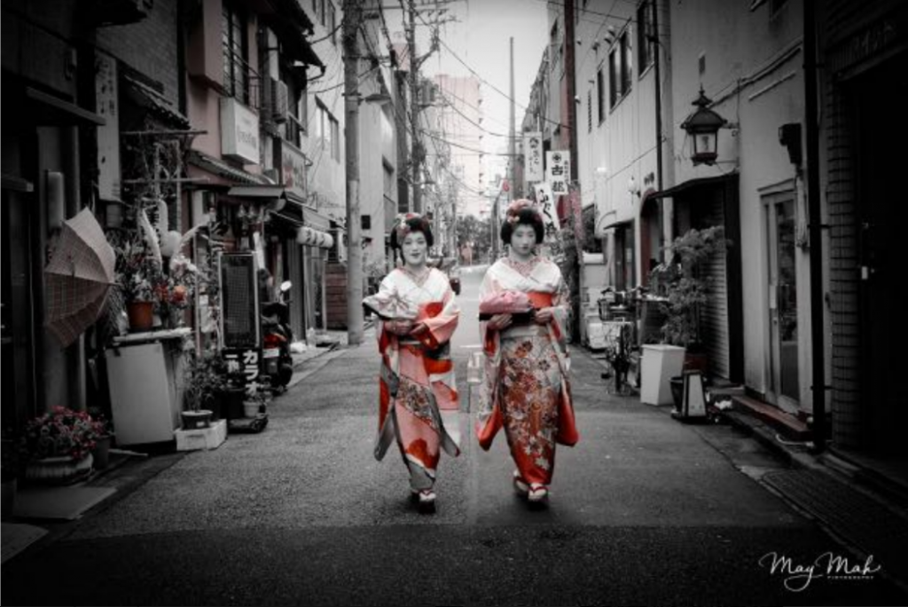 Sokakban él a kép, hogy a gésák a történelem letűnőben lévő titokzatos korszakát jelentik. Azt azonban kevesebben tudják, hogy a világon mindössze négy olyan gésa él, aki angolul is beszél, és utazó nagykövetként mutatja be világszerte e különleges világot. Április 4-én, Magyarországon először lesz látható művészeti előadásuk.