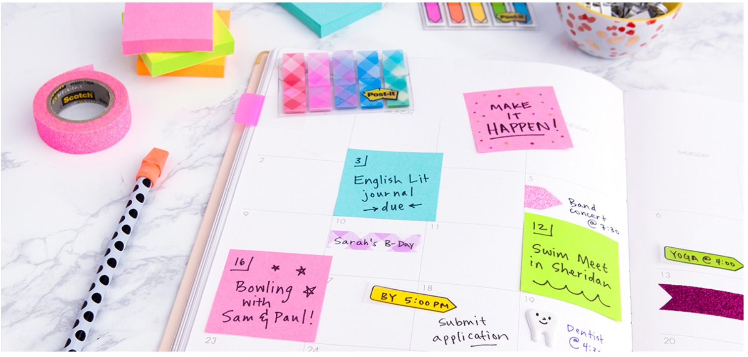 Bármi motoszkáljon is a fejedben miközben koncentrálni próbálsz, mindig vesd papírra! Így az a gondolat, amit már kiadtál magadból békén hagyja a tudatalattidat, és jobban tudsz majd figyelni. Ilyen esetekre mindig jól jön néhány színes Post-it® jegyzettömb és jelölőcímke, pláne ha színkódolással kombinálod. Tudtad, hogy a kék szín például a kreativitást ösztönzi, míg a piros segít jobban elmélyülni a részletekben? Így, ha az ötleteidet kék jegyzetlapokra írod, a fontos emlékeztetőket pedig pirosra, akkor kimaxolhatod a színek agyadra gyakorolt hatását. A színek segíthetnek a tematizálásban is, így egyszerre több gondolatmenetet is kordában tarthatsz, nem fognak összekeveredni a teendőid.