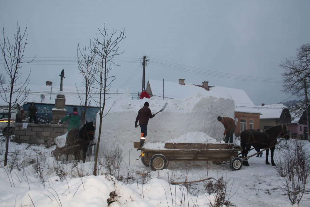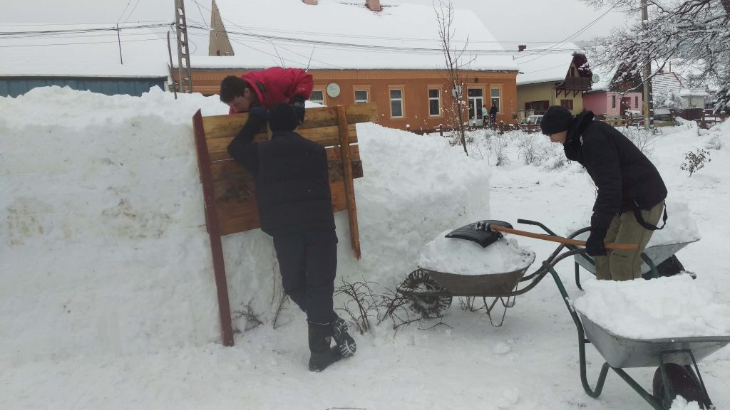 Hargita megyei csíkbankfalvi fiatalok határozták el magukat hogy idén a tavalyi hat méteres hóemberüknél is nagyobbat fognak építeni amelyet most tíz méteresre terveztek. A csapattagjai tizenöt és tizenkilenc év közötti fiatalokból tevődik össze akik heten vágtak neki a nehéz feladat kivitelezésének, a plébániával szembeni park területén.