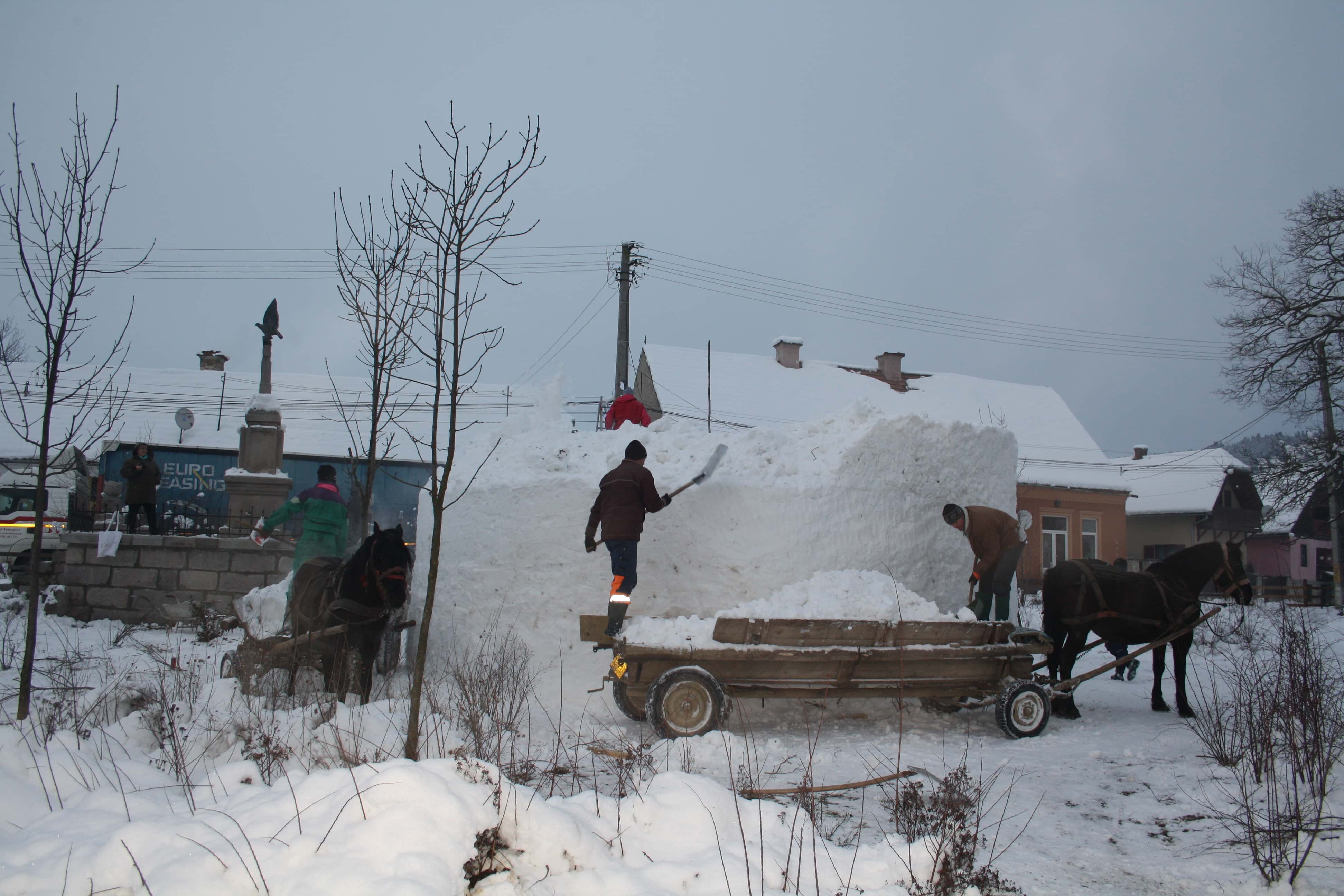 Hargita megyei csíkbankfalvi fiatalok határozták el magukat hogy idén a tavalyi hat méteres hóemberüknél is nagyobbat fognak építeni amelyet most  tíz méteresre terveztek. A csapattagjai tizenöt és tizenkilenc év közötti fiatalokból tevődik össze akik heten vágtak neki a nehéz feladat kivitelezésének, a plébániával szembeni park területén.
